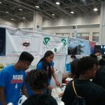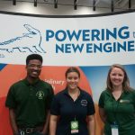 Three MSE students represented their student societies as part of the USA Science and Engineering Festival in Washington DC April 25-27, 2014. Pictured from L- R are Bryeon Jones (National Society of Black Engineers), Jackie Martinez (Society of Professional Hispanic Engineers), and Jessica Poulsen (Society of Women Engineers).