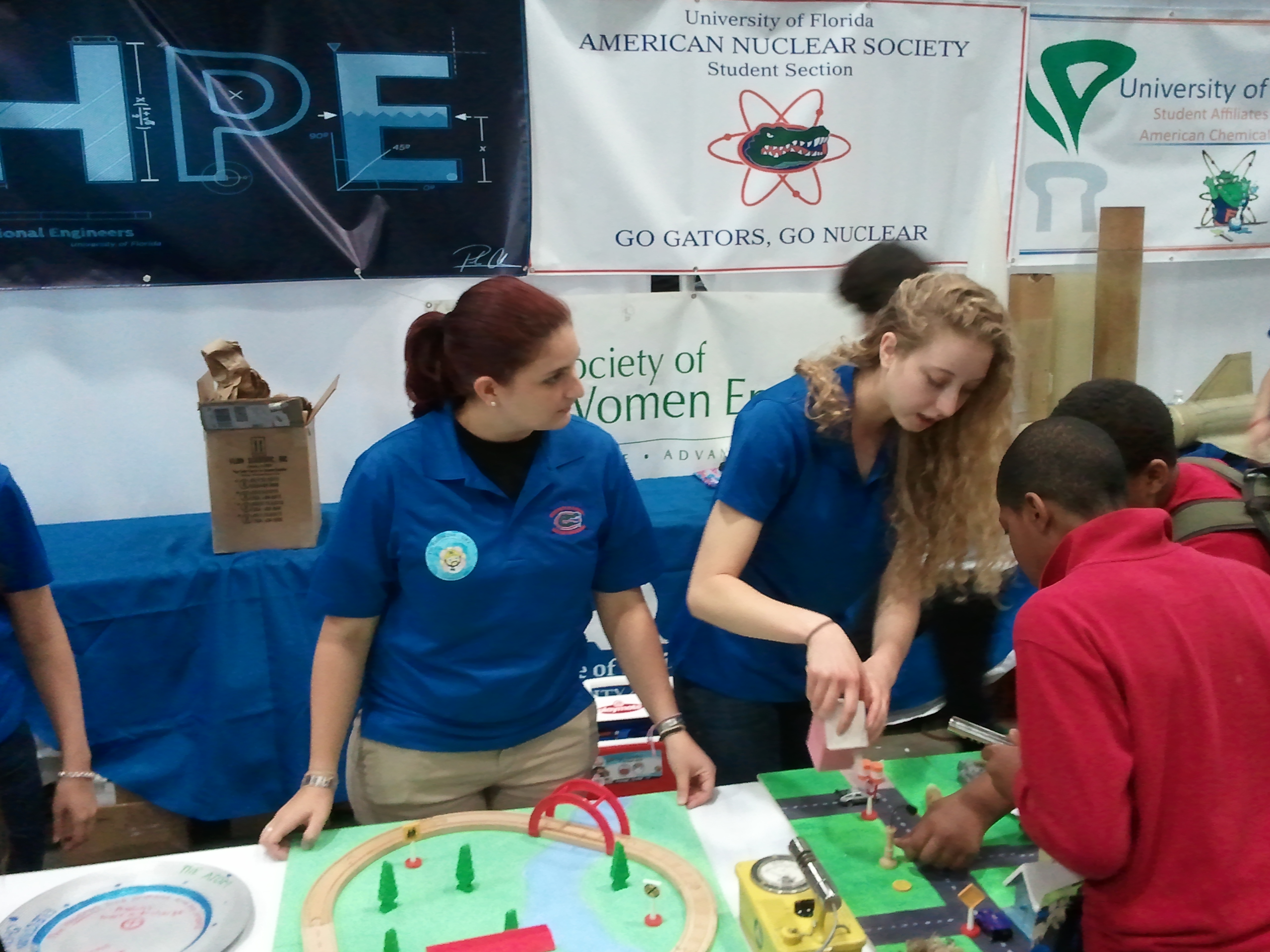 Three NE students represented Women in Nuclear, and American Nuclear Society as part of the USA Science and Engineering Festival in Washington DC April 25-27, 2014. Pictured from L- R are: Chelsea Collins, Lucienne Behar, and Victoria Graham
